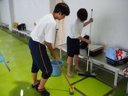 きちんと仕事の任務をこなしていました。プール清掃で明日から屋外プールの清掃に入ると聞きました。暑い中みなさんのために整備することの大切さが学べるのではないでしょうか? 伏見港公園です。