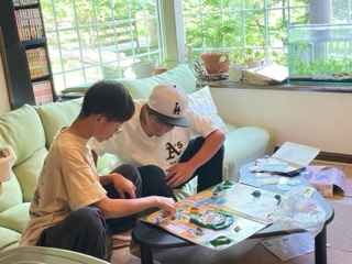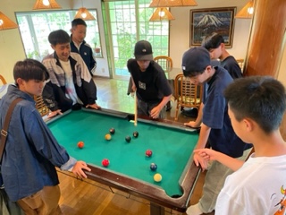 朝から、ビリアード対決と、人生ゲームを楽しんでます。