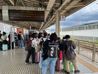 あと10分で三島駅を出発します。行きと同じように、すぐに乗車できるように準備しています。