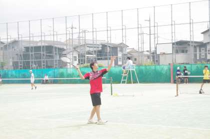 3−3Mさんと2−4Iさんは、学年は違いますがお互いでいい声掛けをしています。Mさんは、入部が他の3年生より遅かったのでこの大会が初めての大会です。そして、3年生で最後の大会です。3年間担任してくれている先生も応援にかけつけています。二人とも笑顔でプレーしているのが印象的です。試合は敗れてしまいましたが、見ていて気持ちがいい試合でした。
