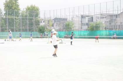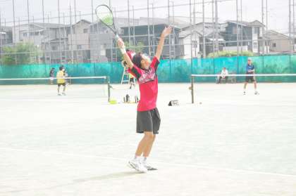 こちらのペアも3−2Tさんと2−2Hさんの2年生と3年生ペアです。1ゲーム目から二人とも調子がよさそうです。応援にかけつけてくれている保護者からも“ナイスショット”の声が響いています。相手のミスも重なり、ストレート勝ちで全市大会をかけた試合に進みます。