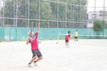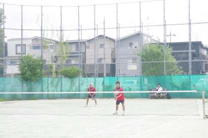 仲間の応援をしている時から2−4Tさんは、少し緊張気味です。誰もが特に自分たちの1試合目は緊張するものです。いかに練習通りプレーするかが勝負の分かれ目です。2−2Mさんともにサーブの調子がイマイチのようです。短い試合の中でいかに早くに調子を取り戻せるかがカギでしたが、最後まで自分たちの実力を発揮することが出来ずまさかのストレート負けでした。暑い中、二人ともよく脚を動かしていました。これからが楽しみな最強ペアです。