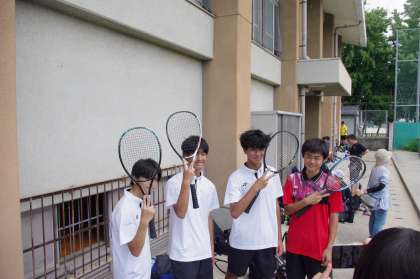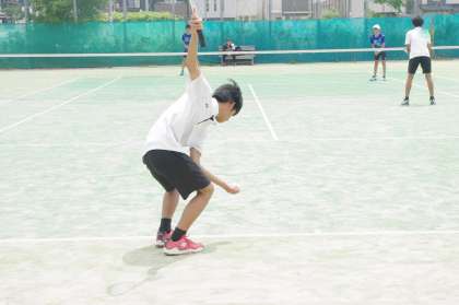 1ゲーム目から攻めの姿勢です。しかし、相手も2試合勝ってきています。1ゲーム目は、攻めの姿勢。2ゲーム目はしっかり相手にかえす堅実なプレーから相手のミスを誘います。2ゲームを先取したことろに勝ちが見えてきて少しリズムが崩れます。3ゲーム目をとられてしまいますが、今日の二人はここから崩れません。4ゲーム目は、積極的なボレーが決まりベスト8進出です。