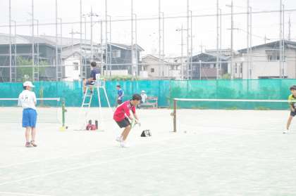 この試合に勝てば全市大会出場です。試合前の練習を見ても全くの互角の戦いになりそうです。1ゲーム目からデュース。アドバンテージから先取。いいスタートです。2ゲーム目も攻めたのですがギリギリのショットが決まらず取られてしまいます。3ゲーム目は、2ゲーム目の流れのまま相手へ。そして4ゲーム目もマッチポイントを奪われてから粘ります。デュースの連続です。しかし、最後は敗れて敗者復活にまわります。まだチャンスはあります。