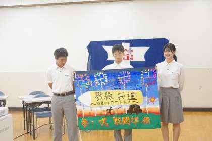 生徒総会に続いて、全クラスの学級旗紹介がありました。それぞれのクラスに特徴があります。すべてのクラスを紹介することは出来ませんが、3年生の旗を紹介させていただきます。