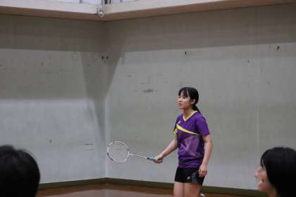 1回戦の序盤、相手選手にリードを許していましたが、14−14と追いつきました。そこから、両選手ともスコアを重ねる流れで19−18とKさんが一歩リード。相手の嫌がるところに、シャトルをコントロールすることができたKさんに軍配があがりました。