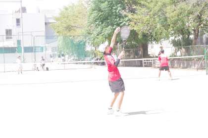 1勝1負で迎えた最終試合。昨年は、1勝2敗が3チーム並んでゲーム数差で次のステージに進めませんでした。1勝したからと言って必ず次のステージに進めるわけではありません。この試合に勝って確実に次のステージへ進出することが目標です。相手は部員数5名です。つまり、1ペアはオープンの試合になるため、1ペアでも勝てばチームの勝利になります。この試合は出場メンバーも少し変更しています。不動の第1ペアの2−2Mさんと2−4Tさんは、先の試合から調子が上がってきています。最初の2ゲームを先取すると勝ちを意識しすぎず自分たちのテニスをして見事に勝利しました。これで、次のステージ進出を確定させました。