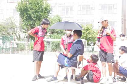 相手チームの人数不足により最後の試合はオープン試合(勝敗に関係なく大淀の勝ちでカウント)です。本日初めて2−3Kさんと2−2Mさんペアの登場です。相手は、オープンの試合でもレギュラーの4人とほぼ同じレベルです。今大会初めて出場の2人は少し緊張気味です。ベンチからの大きな声援もありましたが、なかなか自分たちのプレーをさせてもらえないまま負けてしまいました。この経験を次に生かしてください。