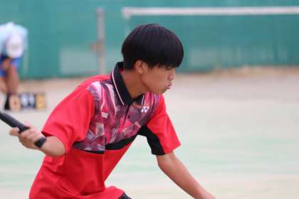 団体戦予選では、2位通過を決めた男子ソフトテニス部。上級の部は、Mさん(2−2)・T(2−4)ペアの試合から始まりました。上位進出が期待されたペアでしたが、勝負所でオーバーショットが目立ってしまい、第2ゲーム、第3ゲームと、デュース戦の中で、ここぞという時に自滅してしまいました。試合は相手との駆け引きでもあるのですが、その駆け引きに負けてしまった感じでした。ショットの強さなどでは相手ペアを上回っていただけに、まさかの初戦敗退となりました。