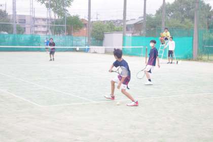 1−2 Tさん 1−3 Kさんペアは、テニスを始めて半年で上達はしています。しかし、対戦相手は経験者のようです。思い切ったショットでストレートを抜くショットもありましたが、続けることが出来ません。初めての試合は、残念ながらストレート負けです。
