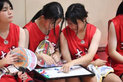 女子バスケットーボールの新チームは2年生8名、1年生6名のメンバーです。主力だった3年生が抜けての初めての大会です。