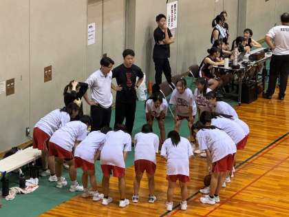 ベスト8をかけた戦いが横大路体育館で行われました。学校からも近いということもあり多くの3年生や保護者の方々が応援にかけつけてくれました。今までは順調に勝ち進んできましたが、次のステージに行くためには、この壁を乗り越えないといけないのはみんな分かっています。それが、力みになったのか開始早々5点を先取されます。ここで流れを変える3ポイントシュートが決まり、大淀中学校にポイントが入ります。そこからリズムが出てきて9−8と逆転。相手も負けじと3ポイントを決めてきます。第1ピリオドを4点差のビハインドで終えます。