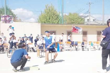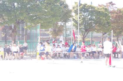ハードル、ボールはさみ、マット、後ろ向き、バスケット、風船割り、個人競技ではなく、団競争というところが面白い。応援にも熱が入ります。