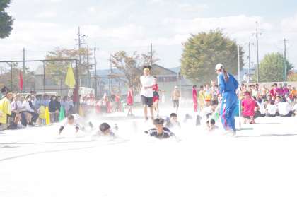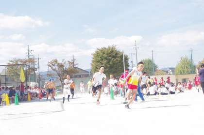 男子チームの部活動リレーは、課外活動チームも参加です。レベルは高いです。最後は、全員そろってヘッドスライディング!