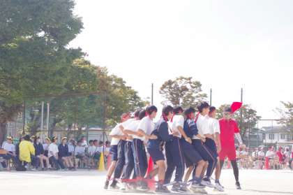 練習では涙しているクラスもあったようです。練習を重ねました。学年練習も繰り返しました。ムカデの縄を結びなおすシーンはどのクラスも一致団結の一言です!