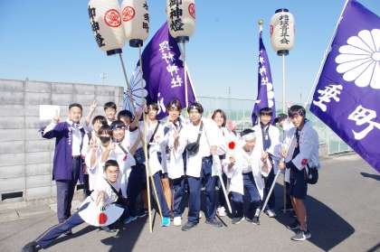 2年生中心のメンバーが東社の方を廻ります。3方向の中で一番の距離です。“ほいっと!ほいっと!”みんな元気に掛け声をかけています。学校周辺も歩いて回ります。普段は車しか通らない宮前橋も車を止めて神輿が通ります。