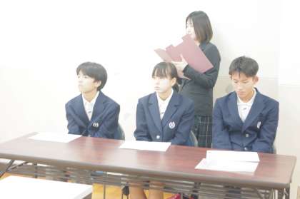 今年、3回目のトークイン大淀は3学年共通テーマ“体育大会・合唱コンクールを通して、クラスが得たもの”です。各学年2名ずつの発表に先生の代表が一人の7人です。オンラインでの発表ですが、全校生徒がしっかり聞いている姿が画面を通してもよくわかります。学年を越えて発表者に対してのコメントも止まりません。縦割りでの取り組みが、成功したことがコメントから伝わります。“感謝の気持ち”“クラスの団結力”“勝つことがすべてではない”“勇気を得た”“クラスもうれしいけど、団での勝利もうれしい”“前日のクラス分裂からの絆の深まり”それぞれの発表にドラマを感じた素敵な発表でした。