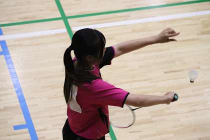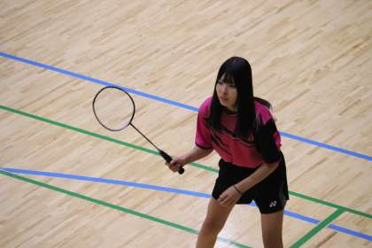 シングルス戦にはHさん(2−2)が出場しました。第1セットは、6−7と接戦に持ち込ました。取材班は、これはいけるかもと思いましたが、そこから徐々に点差をつけられて6−21で落としました。第2セットは、一気にポイントを奪われた感じで、流れをまったく引き寄せることができませんでした。試合後、Hさんはとても悔しい様子でした。格上の相手と対戦したことを、これからの練習の糧にして欲しいと思いました。
