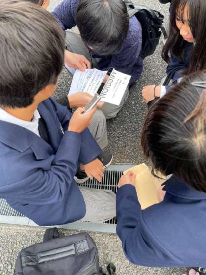集合場所では、ミッションが渡されているようです。それぞれの班が、ミッション達成に向けて出発します。最新機器も手渡されています。この最新機器は、ぱかっと開けて使ってください。画面を触ってもダメなので注意して下さいね。