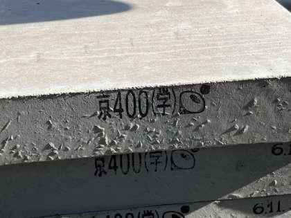 以前の取材で、板で作った枠にコンクリートを流している様子を配信しましたが、その板が外れました。すると立派な壁が出来上がりました。感動です。この部分は、車椅子でも体育館に入れるようにスロープの壁になります。スロープの横側には溝の部分にはめる蓋が運び込まれていました。写真を見ると「京400」という文字が見えると思いますが、学校に使う溝蓋は企画が定められています。1つ8キロの重さです。