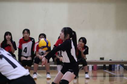新人戦でのベスト8のチームは予選を免除されていて、京都府大会に進出する残りの8校を決める予選となります。新人大会では決勝トーナメント出場を決めた女子バレーですが、レシーブが上手なものの、攻撃の方に課題が残る様子を取材して見えてきました。新人大会から1ヶ月半ほどが経ちましたが、その間どれだけ成長しているのかを楽しみにしていました。