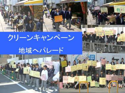 地域に出てパレードをおこない,地域の方々に呼びかけながら行進。