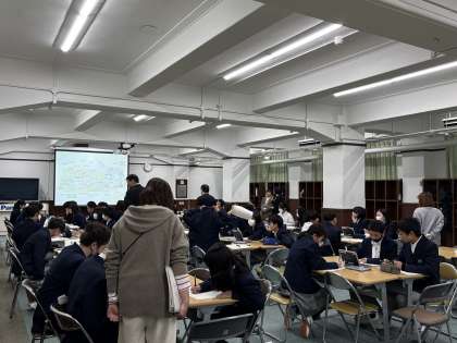 役割分担をして、45分後、グループごとに、発表します。がんばって大淀1年生!