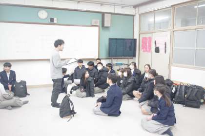 6時間目、3年生の私学受験の生徒が集まっています。みんな少し緊張しているようです。週明けの月曜日と火曜日が私学入試になります。校長先生と学年主任から激励の言葉がありました。進路担当の先生からは、入試に向けての注意事項がありました。いよいよですね。ここまで来たら大切なのは100パーセントの力が出せる体調管理です。今まで頑張ってきた自分に自信を持って笑顔で試験会場に迎える準備を週末してくださいね。