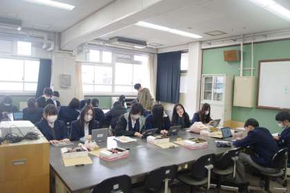 2年生が、修学旅行に向けての取り組みをしています。まだまだと思っていた取り組みも残り約1か月になりました。3年生で新しいクラスになったらすぐに修学旅行です。パソコンに向かうグループ、意見を出し合っているグループ、楽しそうに踊っているグループ、いい修学旅行になりそうです。