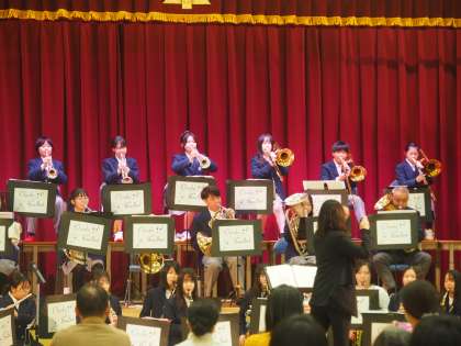 朝早くから吹奏楽部が、今日のコンサートに向けて準備をしています。新しい体育館になって初めてのコンサートです。13時過ぎには、体育館前に開演待ちの保護者の方々が並んでいます。卒業生の応援もあるようです。アンコールも含めて11曲の曲を披露しました。新しい体育館で楽しそうに演奏しているのが印象的でした。次は、春の交通安全週間に向けて淀競馬場緑の広場で披露する予定です。皆さんご期待ください。