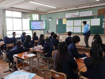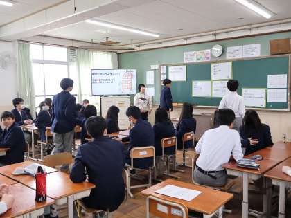 3年生の学びの学活は、早速ボードを使っているようです。大淀中学校に今年から赴任された先生もいます。生徒のみなさんから大淀スタイルを伝える場面もあると思います。先生も生徒も一緒に勉強です。