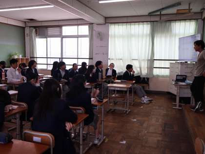 授業が始まると、1年生が3年生の授業見学にきます。3年生の姿を1年生が追いかけます。いい手本になるために確認をこの授業で行っています。