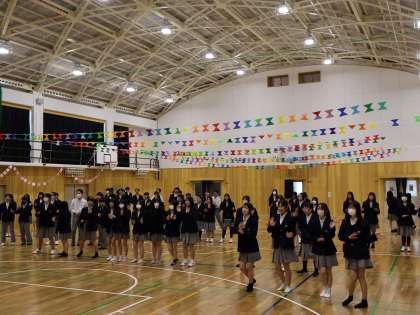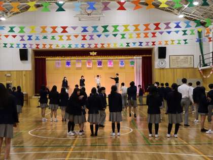 2年生に続いて3年生も学年集会をしています。担当の先生方の自己紹介のあとは、全員で踊っています。来週に迫った修学旅行でレクの中で全員ダンスをするようです。ビーチサイドでみんなが踊っている姿が楽しみですね。