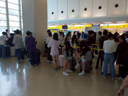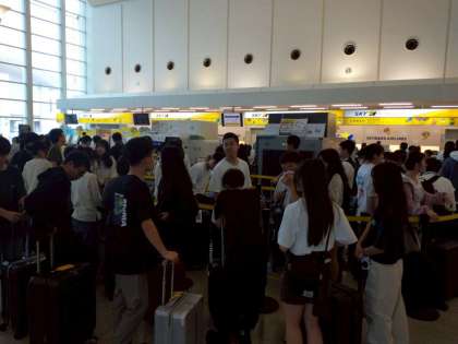発券、手荷物検査そして搭乗口へ向かってます