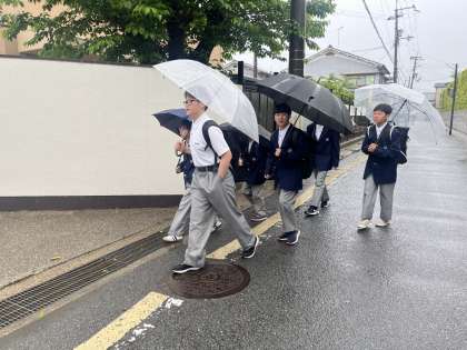 雨にもかかわらず今日も、あいさつ運動です。今日頑張れば、明日からゴールデンウィーク後半で4連休になります。天気に負けず今日も一日頑張りましょう!