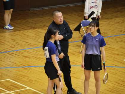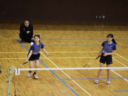 2年生ペアのOさんとKさんのベスト8をかけた試合です。ここまでくるとレベルが一気に上がる印象です。今までは決まっていたマッシュも返されます。ラリーも前後に揺さぶられることが多いです。チャンスボールはしっかり決められます。1ゲーム目は9ポイント、2ゲーム目は、いいゲームでしたが17ポイントでストレート負けでした。まだまだ2年生です。次はベスト8に入れるように練習してくださいね。