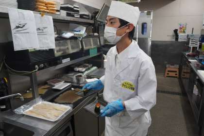 お寿司屋さんです。頑張ってました。おいしいまかないももらえたようで、よかったね!