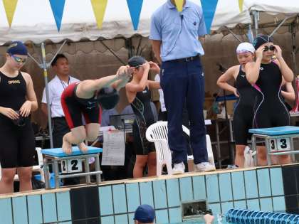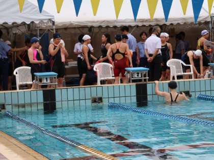 本日最終の競技は、4×100メートルのフリーリレーです。昨年までは人数の関係でリレーに出ることはできませんでしたが、春の大会からリレーに参戦です。前半大きく他の学校にリードされますが、最後の最後で一つ順位を上げる粘りを見せてくれました。水泳部は、春の大会と夏の大会の間が短いですが、大きな大会が待っているので全力で挑んでもらえたらと思います。水泳部にみなさん、テスト前によく頑張りました。