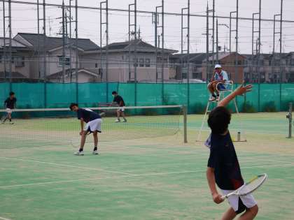 どの中学校よりもエントリー数が多く10ペアが出場します。同時に試合が始まるケースも多くあり、応援する選手も大変です。すべての試合の詳細説明はできませんが、猛暑の中、精一杯頑張った男子ソフトテニス部の結果の報告をします。