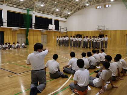 今日は、青団の練習風景です。各パート練習を行っています。パートによってやり方はそれぞれです。各学年が聞き合っているパートもあれば、全体で繰り返し練習しているパートもあります。3年生のリーダーがそれを引張っています。各パートに団長が激励の言葉をかけています。団練習・クラス練習まだまだこれからです。