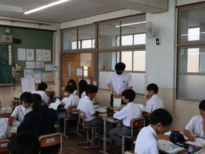 2学期から週3日ですが、みなさんの授業を中心にサポートしてくれる総合育成支援員の先生が加わってくれました。実は、2年前からインターンとして学校で実習をして昨年も1年間卒業した学年に関わってくれました。今年は、1年生のみなさんと授業で関わることが多くなると思います。気軽に話しかけてくださいね。