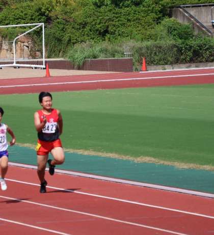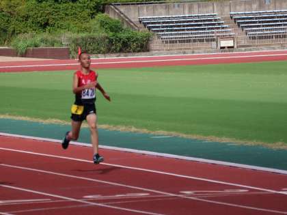 100メートルには、男子も出場です。1年生TさんとYさんです。前回の大会は、まだユニフォームでの出場ではありませんでした。今回からチームユニフォームを身にまとい、走るフォームも短距離選手らしい走りに見えます。これからの成長に期待します。