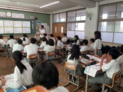 6時間目1年4組保健の授業は研究授業でした。思春期の心の変化や性への関心に対する向き合い方について考える授業です。心も体も大きく変化するこの時期、「性」について考えることは、これからの「生」について考えることでもあります。とても大切です。授業の初めは、まずみんなのアンケート結果を共有しました。恋愛のことや男女の体の違い、心の違い、性感染症や妊娠について、それぞれ知りたいと思っていることがありました。その中で正しい情報を得ることの大切さを確認し、後半のグループ学習では、SNSの危険性を考えることもできる課題に取り組みました。グループ活動中はにぎやかに意見を出し合うことができ、全体で誰かが発表するときや先生がお話しされるときは、自然と静かになって聞くことができていたのは、とてもすばらしいです。話すときと聞くときのメリハリがつけられる集団は、これからもっといろんなことができる集団へと成長するはずです。期待しています!