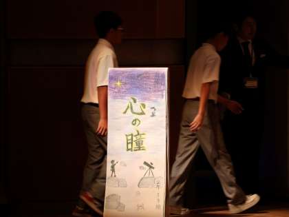 2年生が始まりました。2年生トップは1・3組。“心の瞳”です。