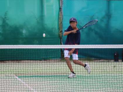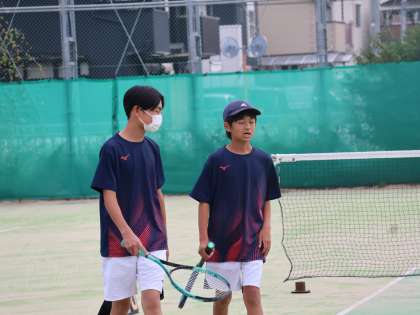 一番手で登場は、2年生TさんとKさんペアです。相手は八条中学校で昨年から上位に入賞しているペアです。序盤にカットサーブがうまく決まりますが、浮いたボールを全てコースに決められストレートで負けてしまいました。