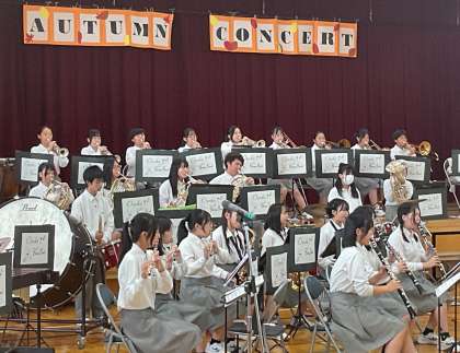 11日(土)13:30から美豆小学校にて、大淀中学校吹奏楽部、通称「淀吹」Autumn Concertが 開催されました。淀吹のみんなは、午前中から美豆小学校で練習し、会場を準備し、お客様の迎え方を練習して、準備万端で開演を迎えました。13:00に開場されたら、続々と地域の方や保護者の方がきてくださり、客席は満員状態に。地生連のPTA会長様の挨拶に続き、「聞いている皆さんに楽しんでもらえるように演奏します」という部長の言葉で開演しました。1曲目は「MILITARY ESCORT」 そして2曲目は夏の吹奏楽コンクールで演奏した「CHORALE PARAPHRASE」です。コンクールに向けて磨きぬいた曲、かっこよかったです!より多くの人に聞いてもらうことができました。