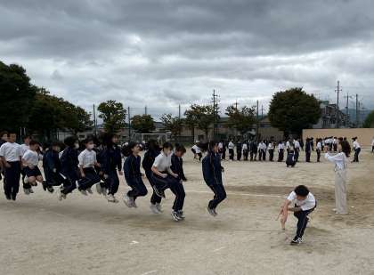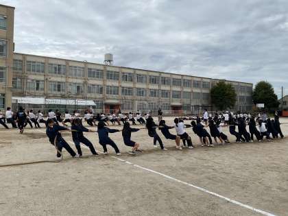 今日の56時間目は、先週雨でできなかった体育大会の予行でした。空模様は少し怪しかったですが、日差しもなく、涼しくて活動しやすい気候です。昨日の雨でぬかるんだグラウンドを、朝から先生方が整備し、手伝ってくれた生徒のみんなもいました。今日の予行では、先週の体育館では出来なかった縦割り種目の練習がメインです。綱引き、玉入れ、大縄、色別対抗リレーと、すべての競技に本気で取り組み、本番さながらの2時間でした。競技に真剣に臨み、本気を楽しむ姿、大淀中生の素晴らしいところです。みんなの一生懸命がカッコイイ!