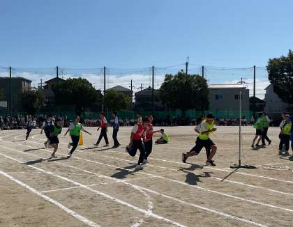 午前中最後の競技は、学級対抗リレーです。どのクラスも、一生懸命応援し、選手達も一生懸命走ります。クラス愛があふれる瞬間です。勝ち負けを超えて、クラスの絆を手にしよう!