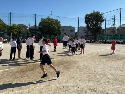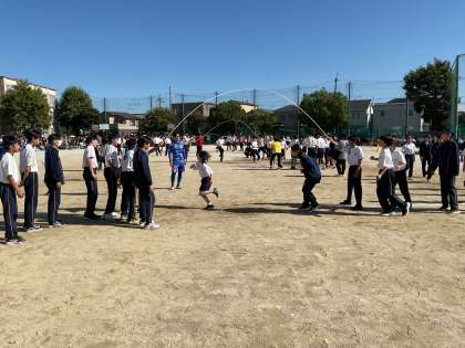縄跳びは8の字もあります。これも昼休み、何度も練習しました。各団、引っかからずにたくさん跳べるようになりました。昼休みの練習は楽しそうでしたが、今日は真剣勝負!でも笑顔!団対抗「大縄跳び」の総合計は、黄団223回 赤団193回 青団117回でした!どの色もみんな、精一杯よく頑張りました!