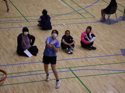 バドミントン部の各ブロックを勝ち抜いた選手が洛星中学校に集まり全市大会が行われています。大淀中学校からは、1年生Kさんが個人戦に出場です。相手は、昨年まで全市で9連覇をしていた強豪蜂ヶ岡中学校です。さすがに強豪の個人戦の相手です。なかなかポイントを奪うことも厳しい状況です。前後左右の絶妙なところへのショットに1ゲームは対応できません。2ゲーム目は前半リードを奪う場面もありましたが力負けしてしまいました。まだ1年生です。これからですね。